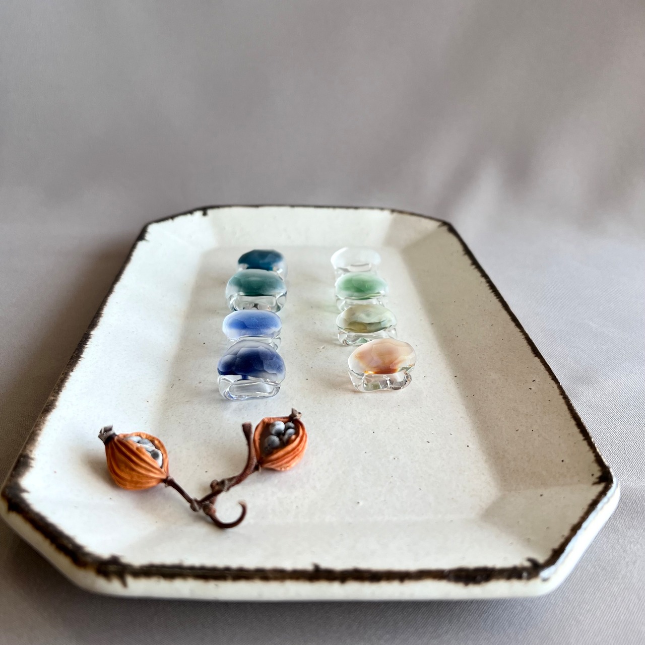 透明度の高いものは通す紐によって色に変化が出るので、小物での表情の変化もお楽しみください。