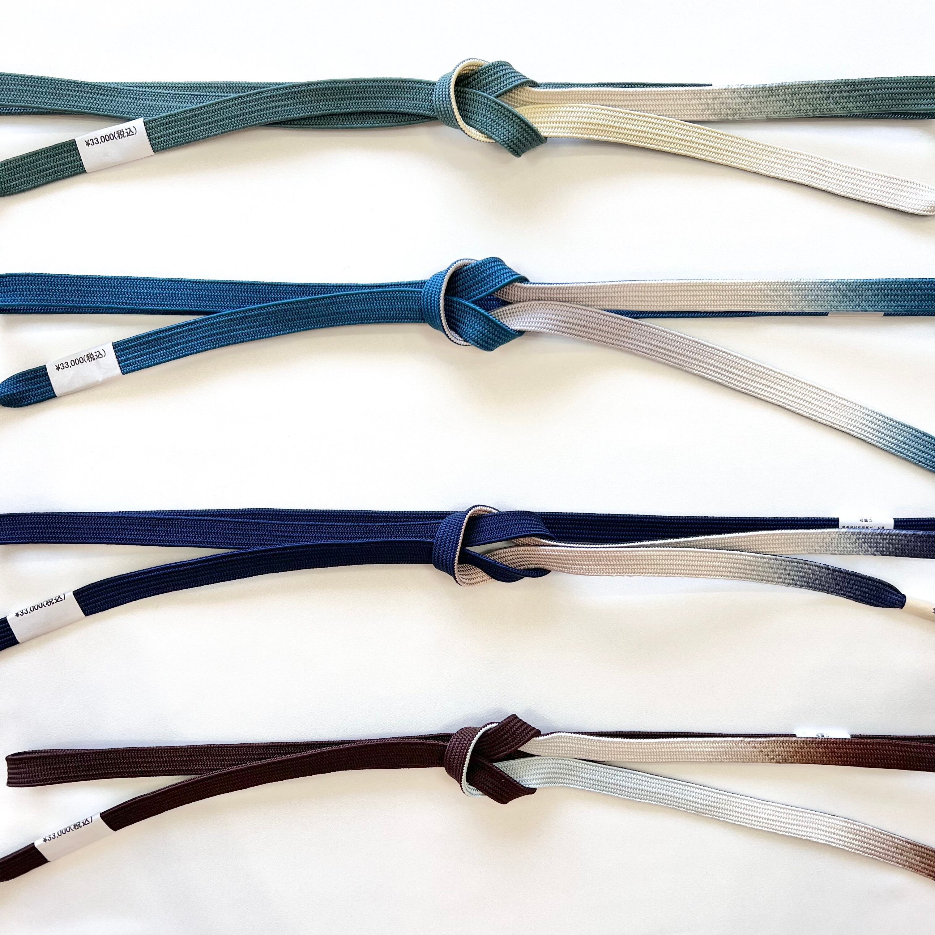 帯の中心から胴回り、脇にかけてグラデーションが美しく、表情が豊かで大変楽しい帯締めです。